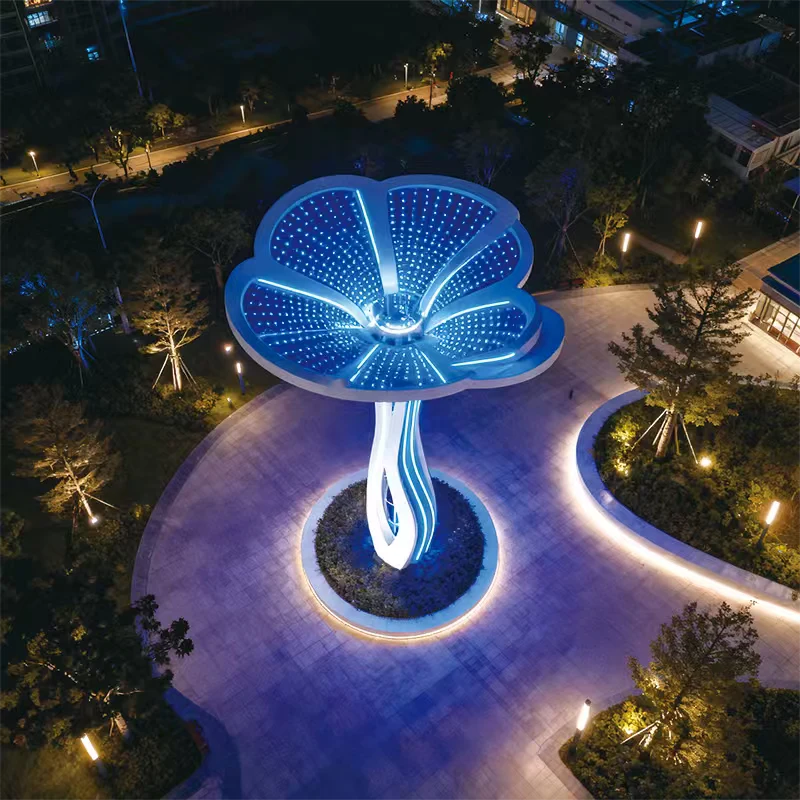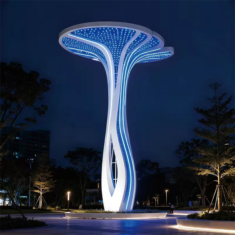 Whether used in urban plaza scaulture lighting, commercial landscapes, or cultural destinations, the structure offers both day-time sculptural value and night-time visual performance. For cities and developers seeking custom scaulture lighting solutions, the Aurea Cloud Spire supports optional solar-assisted power systems and programmable lighting effects.