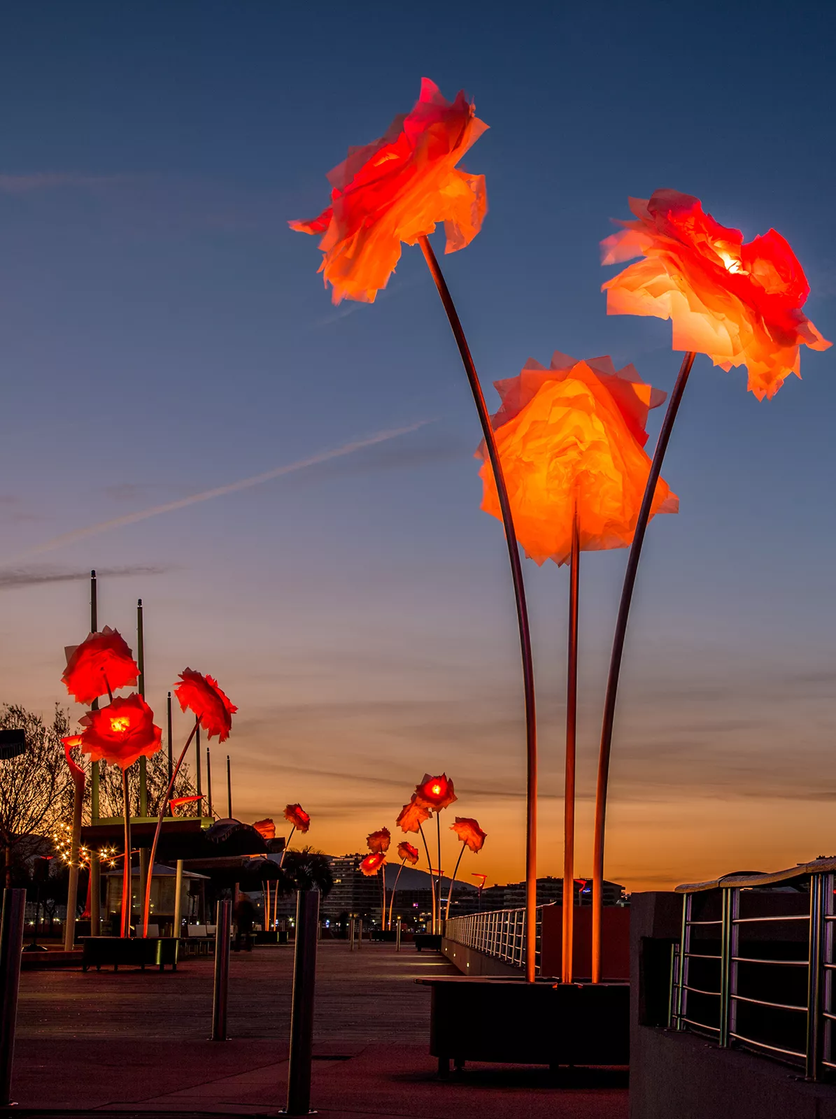 These flower-shaped motif lights are widely used in landscape projects, city plazas, waterfront parks, event venues, shopping streets, and international lighting festivals.