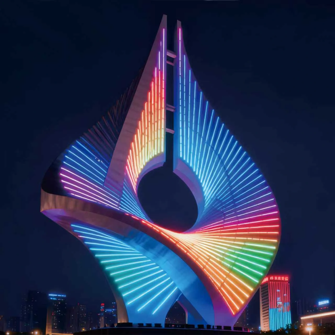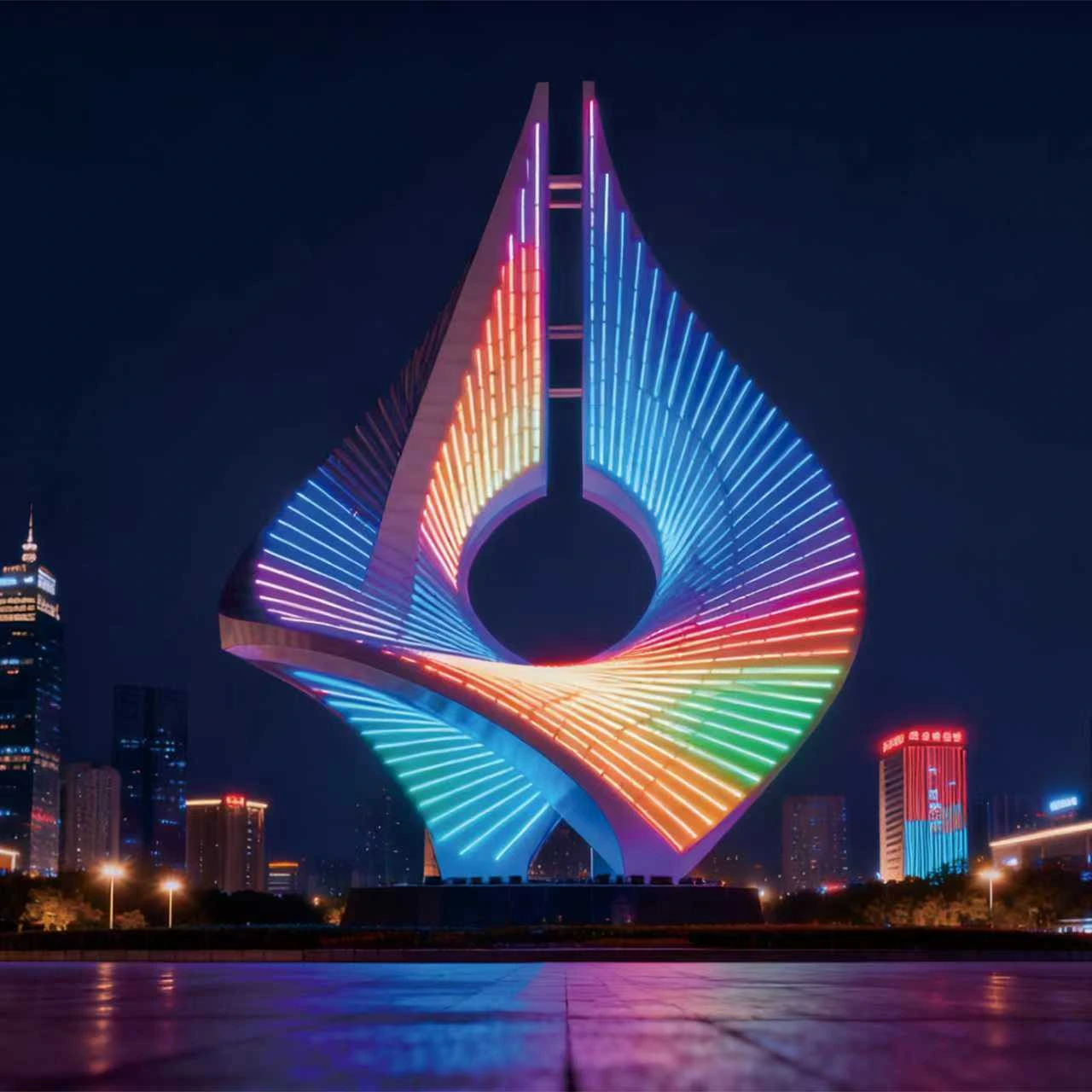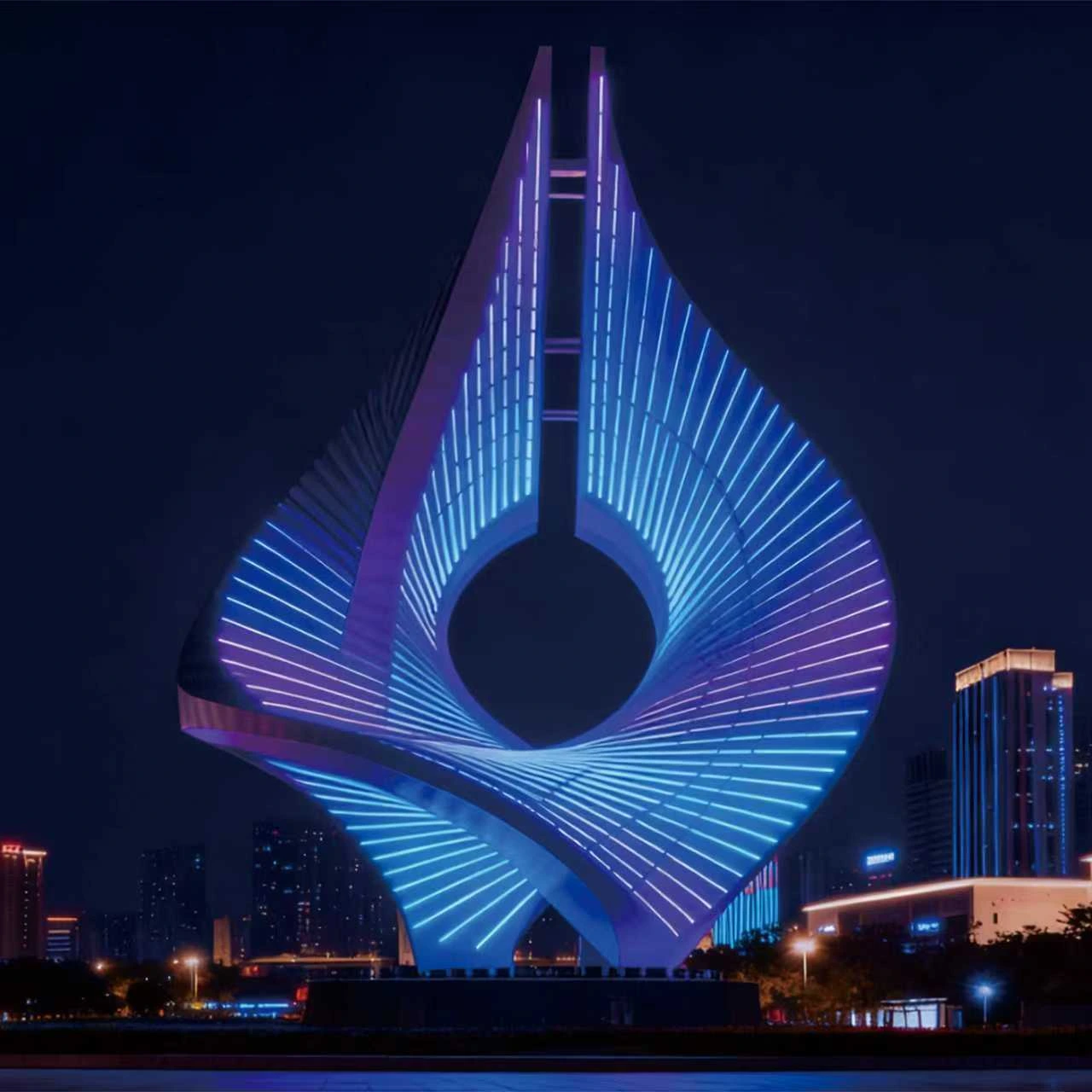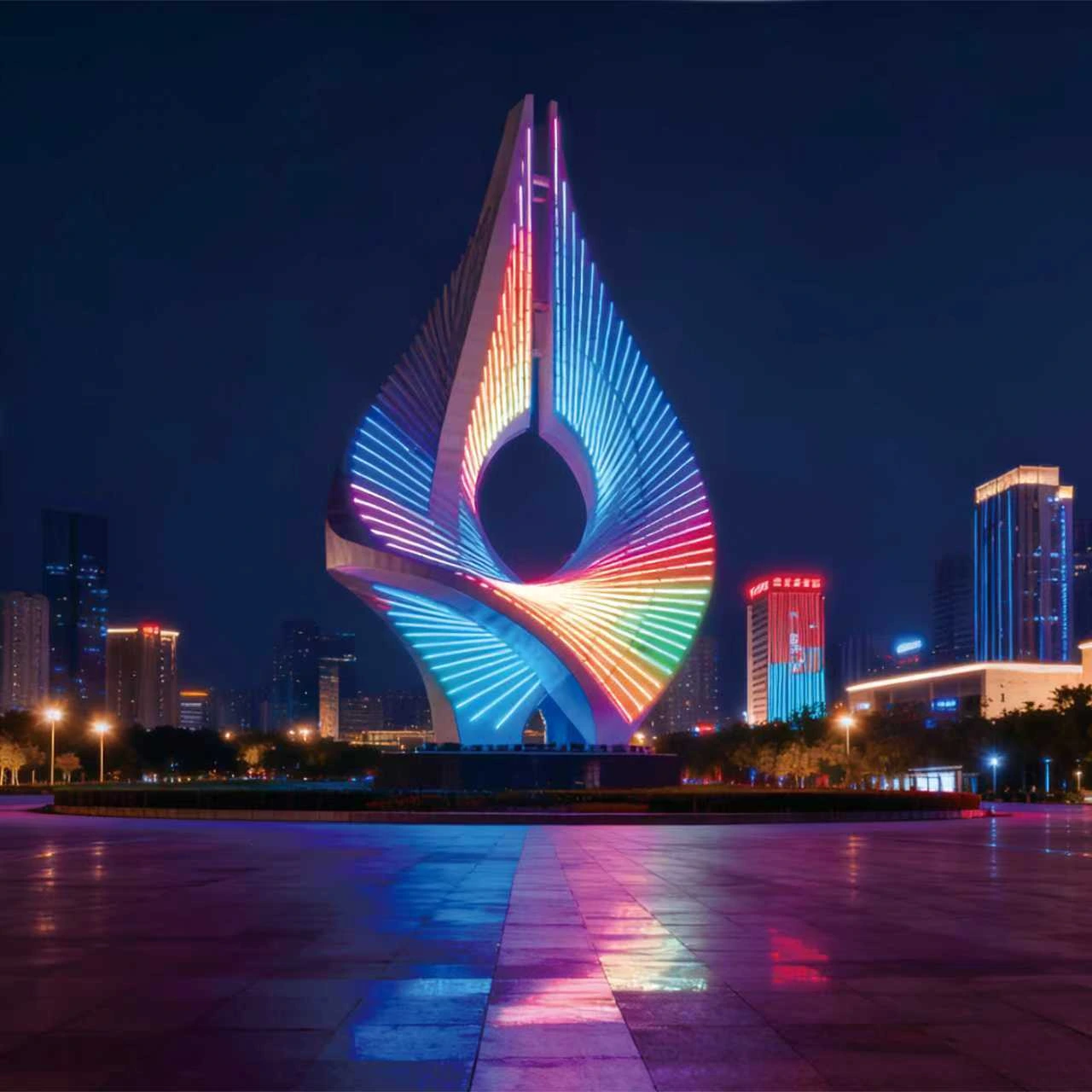 The vibrant lighting effects create a unique visual atmosphere, making the sculpture highly suitable for night tourism lighting, cultural attractions, and city image enhancement projects.